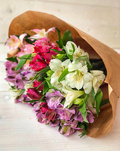 Букет «Ассорти» подкупает своей яркостью и разнообразностью цветовой палитры. Представленные здесь альстромерии разных цветов выражают хорошее отношение, дружбу и благодарность. Цветы универсальны и ненавязчивы, отлично подойдут для мужчин, в том числе коллег и друзей. Букет поможет принести извинения или порадовать человека незабываемым способом.